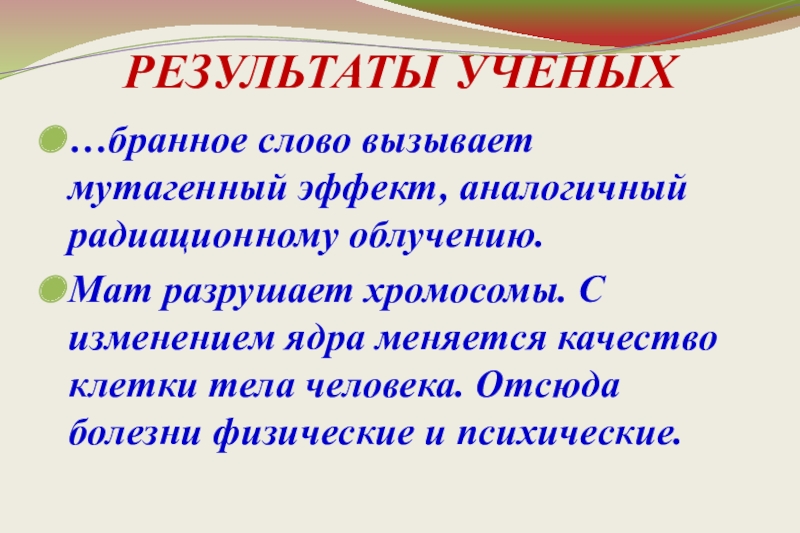 …бранное слово вызывает мутагенный эффект, аналогичный радиационному облучению.