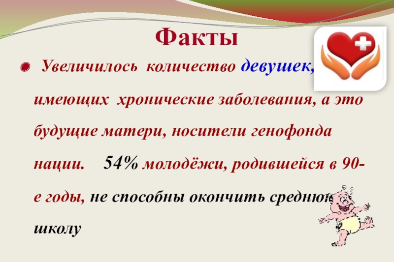 Увеличилось количество девушек, имеющих хронические заболевания, а это будущие матери,