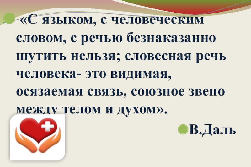 Слайд 3 «С языком, с человеческим словом, с речью безнаказанно шутить нельзя;