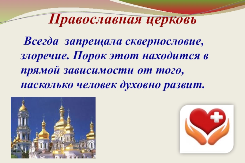Всегда запрещала сквернословие, злоречие. Порок этот находится в