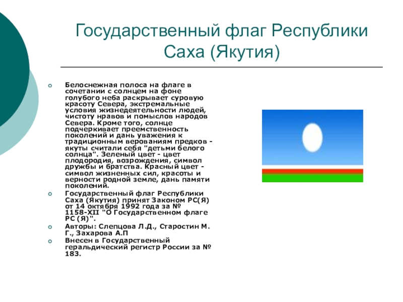 Слайд 10Государственный флаг Республики Саха (Якутия)