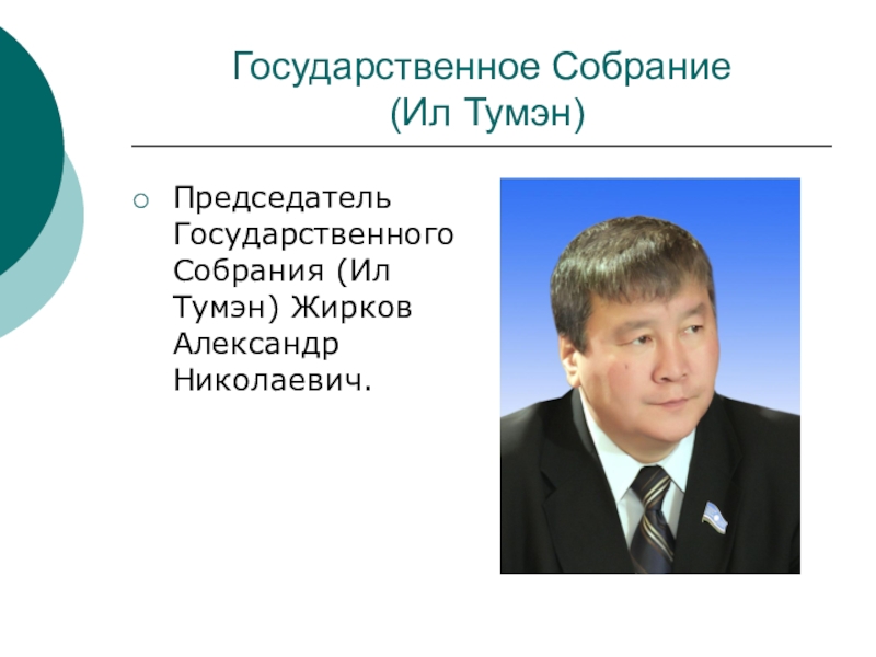 Председатель Государственного Собрания (Ил Тумэн) Жирков Александр Николаевич.