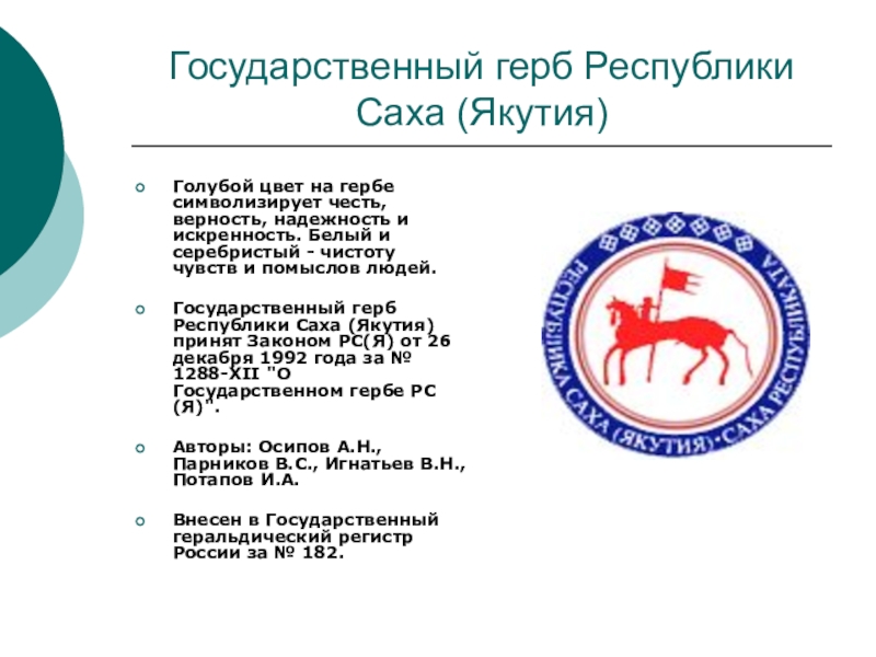 Слайд 8Государственный герб Республики Саха (Якутия)