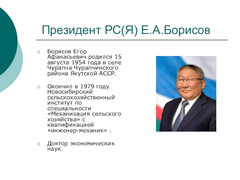 Слайд 4Егор Афанасьевич Борисов Президент РС(Я)