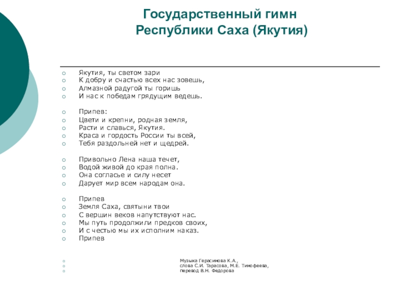 слова С.И. Тарасова, М.Е. Тимофеева,