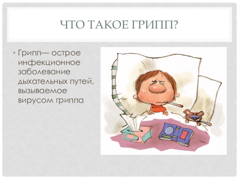 Что такое грипп?Грипп— острое инфекционное заболевание дыхательных путей, вызываемое вирусом гриппа