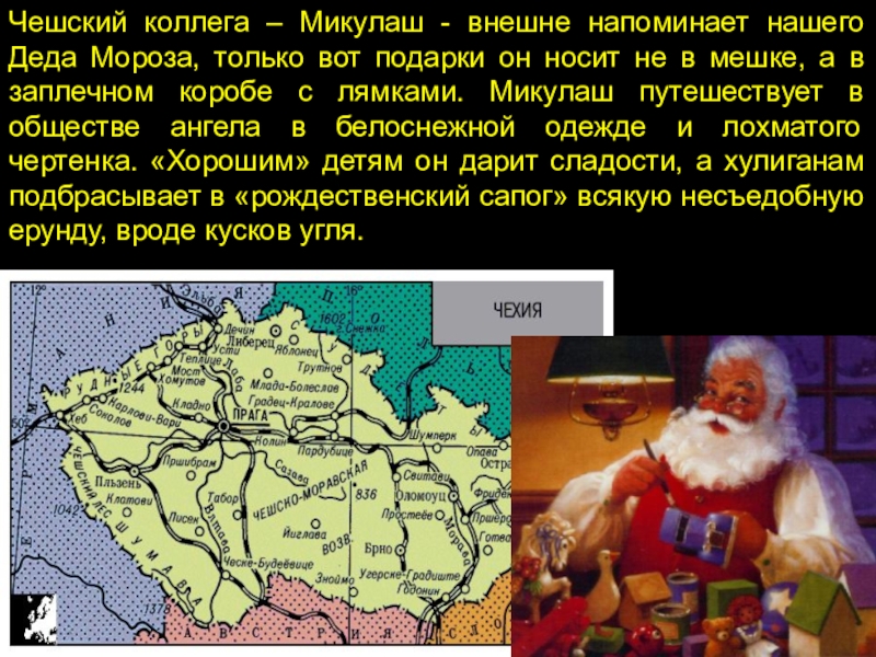 Слайд 25Чешский коллега – Микулаш - внешне напоминает нашего Деда Мороза, только