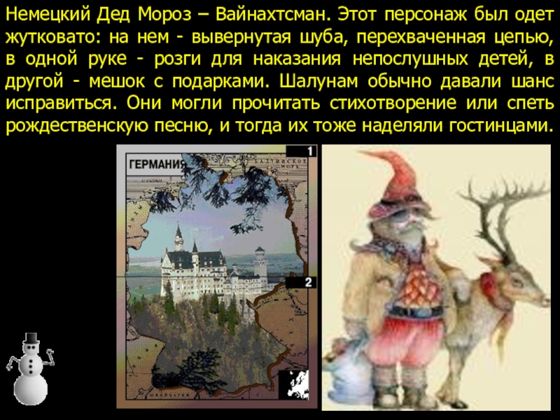 Слайд 20Немецкий Дед Мороз – Вайнахтсман. Этот персонаж был одет жутковато: на