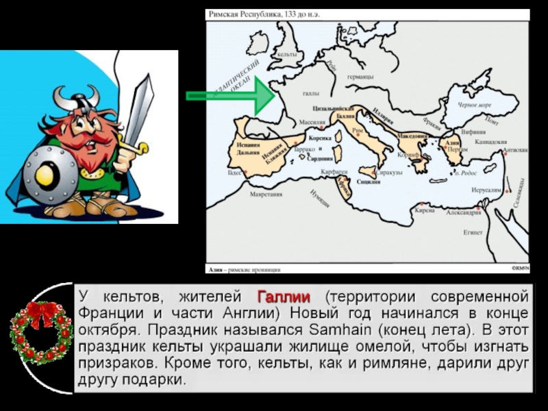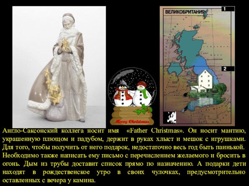 Слайд 21Англо-Саксонский коллега носит имя «Father Christmas». Он носит мантию, украшенную плющом