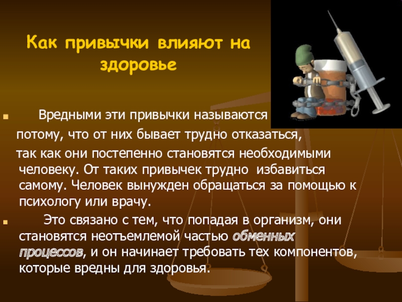 так как они постепенно становятся необходимыми человеку. От таких привычек трудно избавиться самому. Человек вынужден обращаться за помощью к психологу или врачу.
