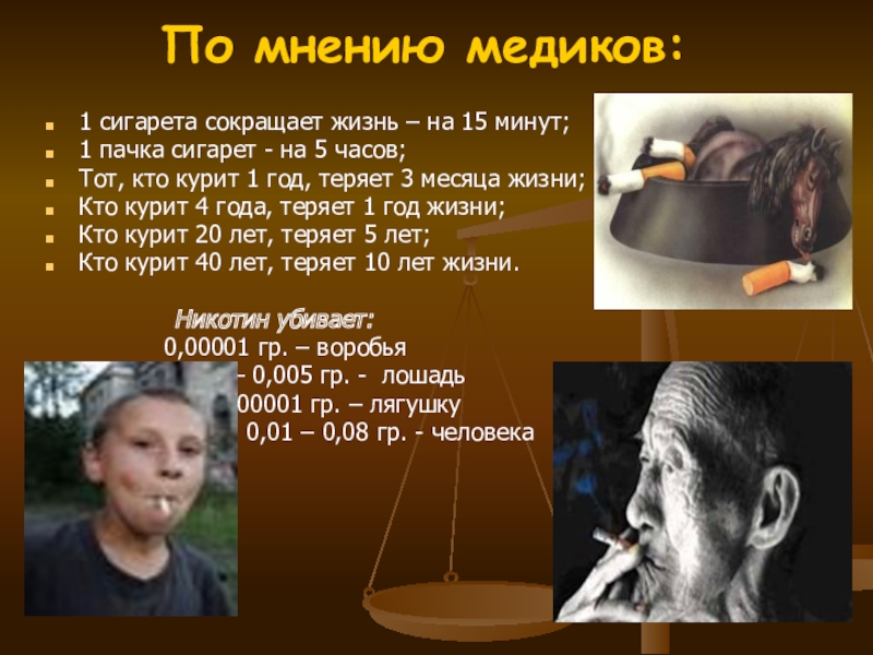 1 сигарета сокращает жизнь – на 15 минут;