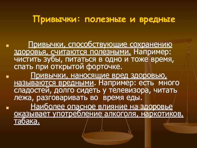 привычках и их влиянии на здоровье,