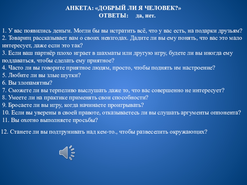 Это сайт презентаций, где можно хранить и обмениваться своими презентациями, докладами, проектами, шаблонами в формате PowerPoint с другими пользователями. Мы помогаем школьникам, студентам, учителям, преподавателям хранить и обмениваться учебными материалами.