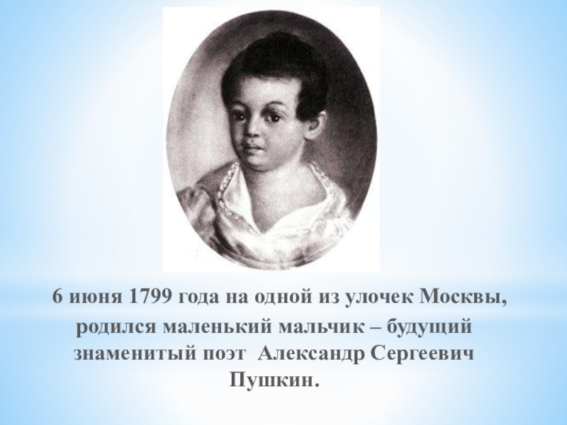 6 июня 1799 года на одной из улочек Москвы, родился маленький мальчик – будущий знаменитый поэт