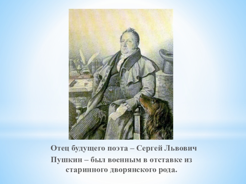 Слайд 4 Отец будущего поэта – Сергей Львович Пушкин – был военным