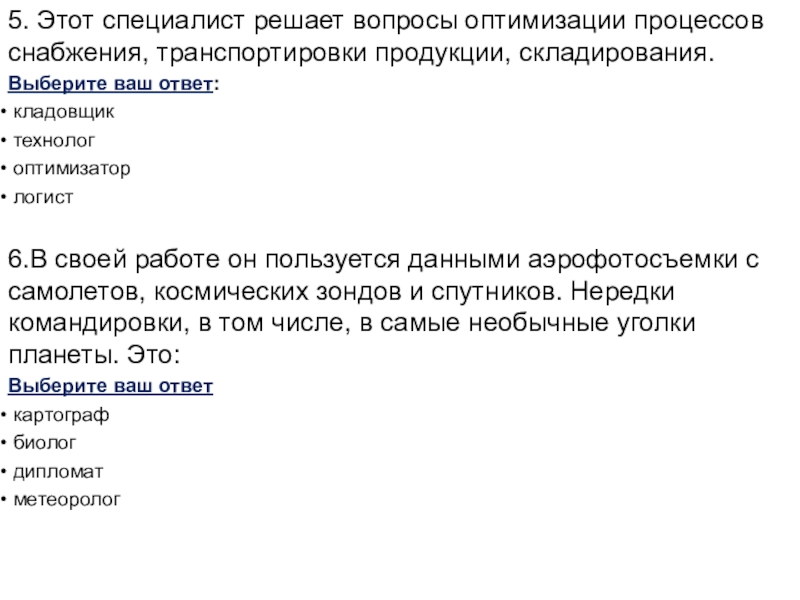 6.В своей работе он пользуется данными аэрофотосъемки с самолетов, космических зондов и спутников. Нередки командировки, в том числе, в самые необычные уголки планеты. Это: