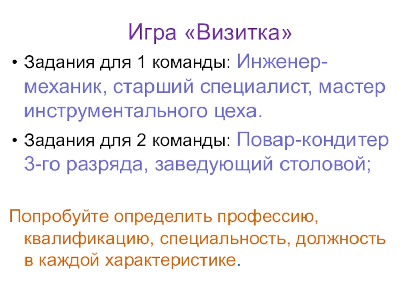Попробуйте определить профессию, квалификацию, специальность, должность в каждой характеристике.
