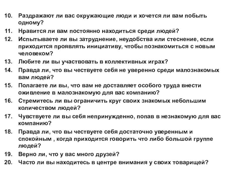 Полагаете ли вы, что вам не доставляет особого труда внести оживление в малознакомую для вас компанию?