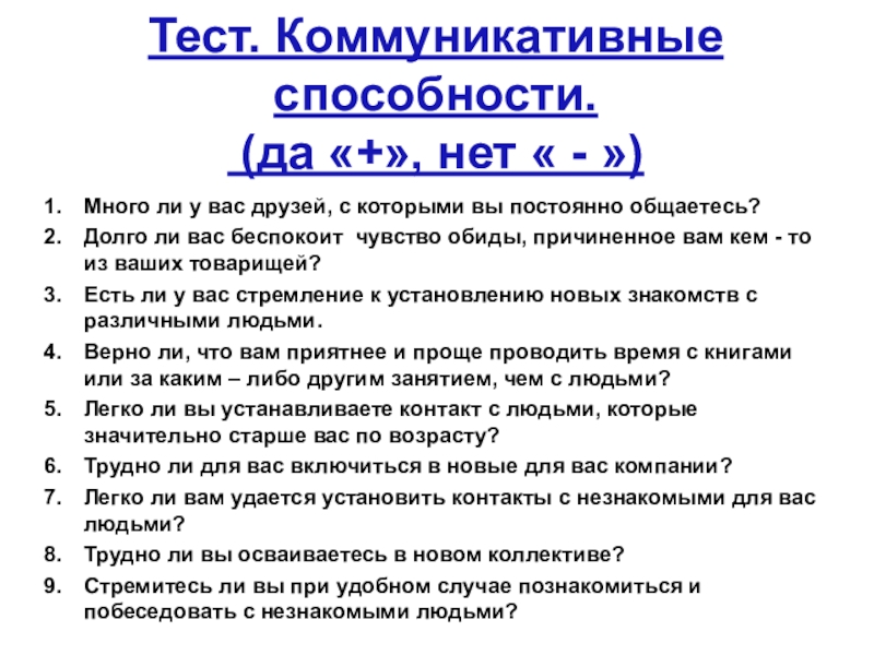 к новым контактам с людьми, неограничивая круг своих привычных знакомств. Они охотно проявляют лидерское поведение, отстаивают свое мнение. Однако потенциал их способностей не отличается устойчивостью. Если они хотят быть успешными в общении с людьми, нуждаются в серьезной и планомерной работе по формированию и развитию способностей.