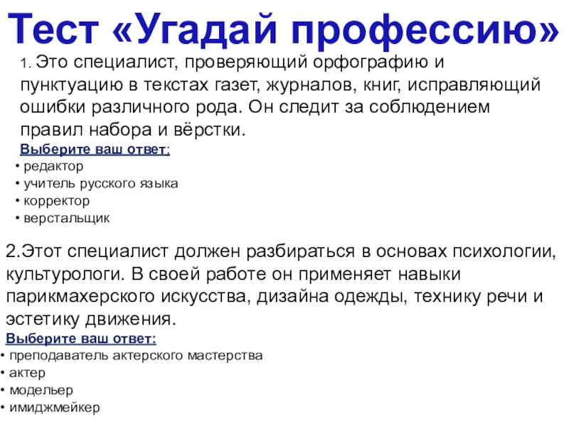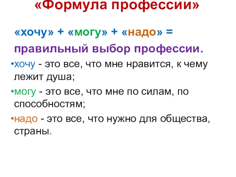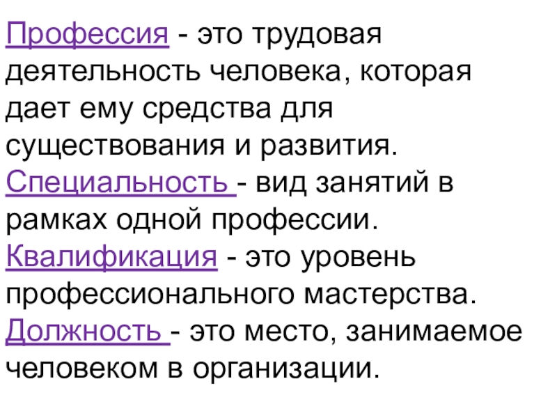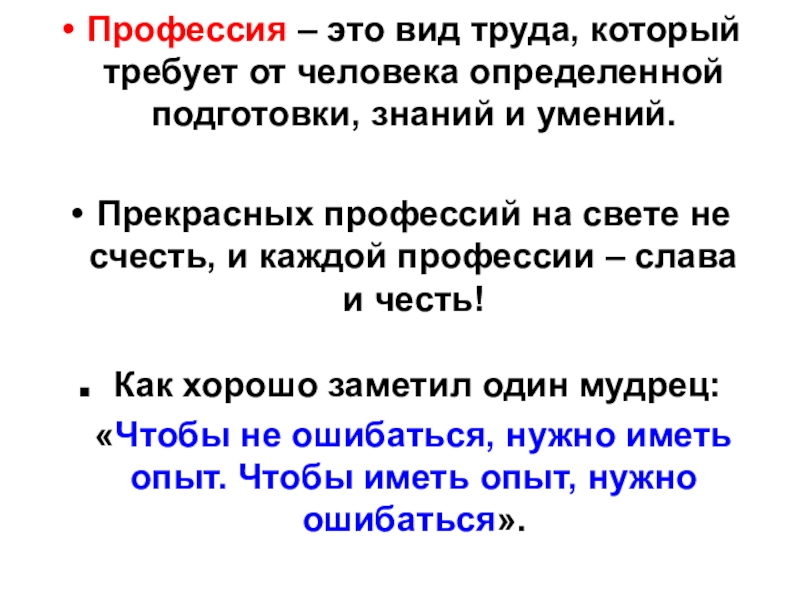 Профессия – это вид труда, который требует от человека определенной подготовки,