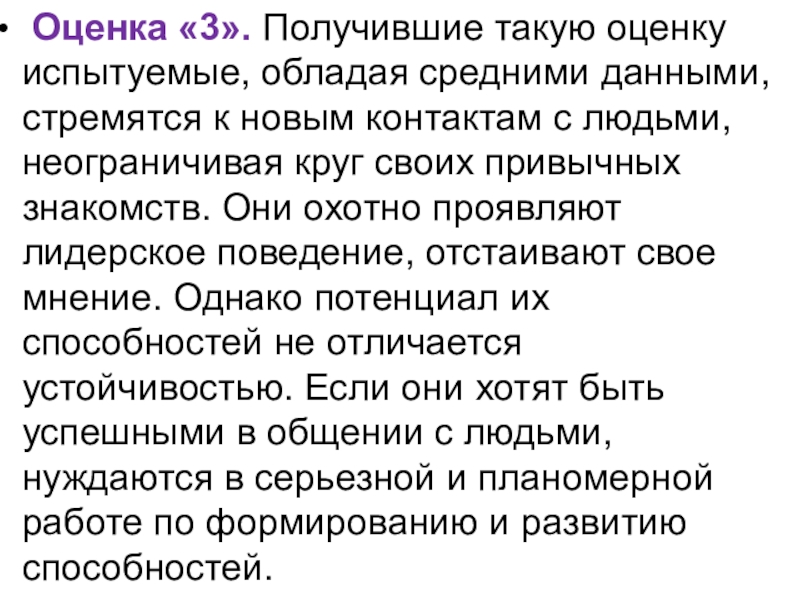 Оценка «3». Получившие такую оценку испытуемые, обладая средними данными, стремятся