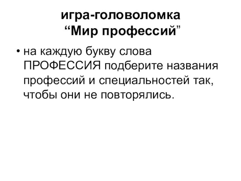 на каждую букву слова ПРОФЕССИЯ подберите названия профессий