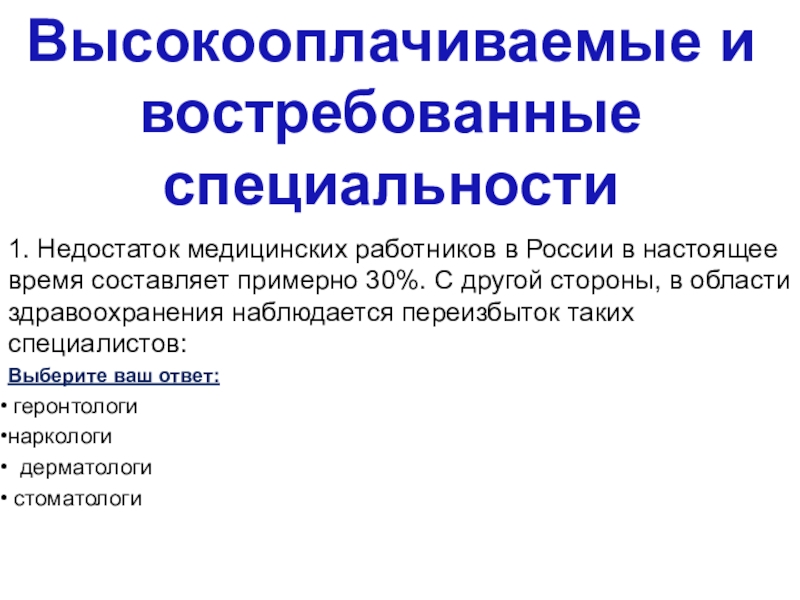 1. Недостаток медицинских работников в России в настоящее время составляет примерно