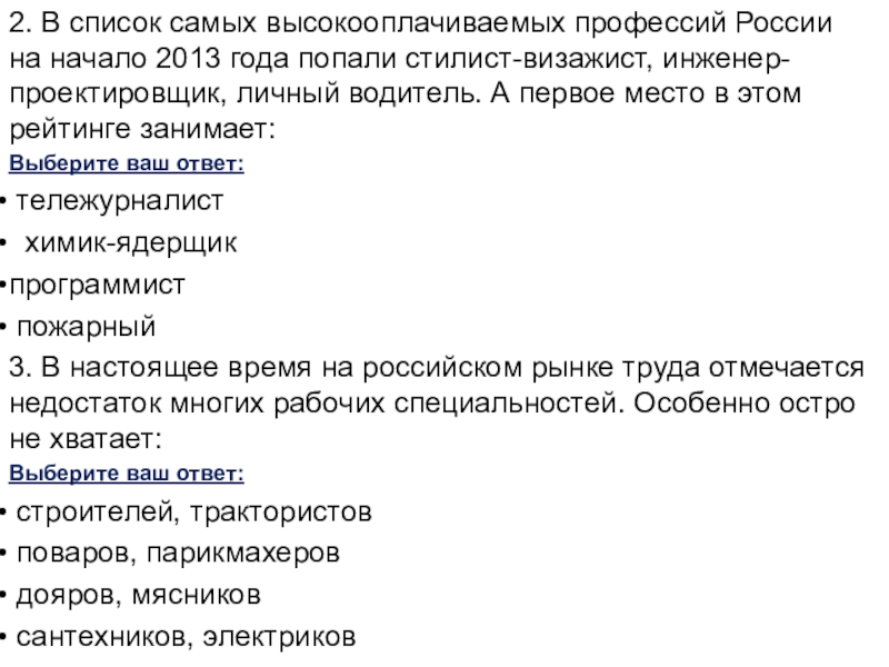 2. В список самых высокооплачиваемых профессий России на начало 2013 года