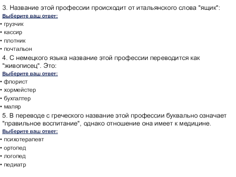 3. Название этой профессии происходит от итальянского слова "ящик":