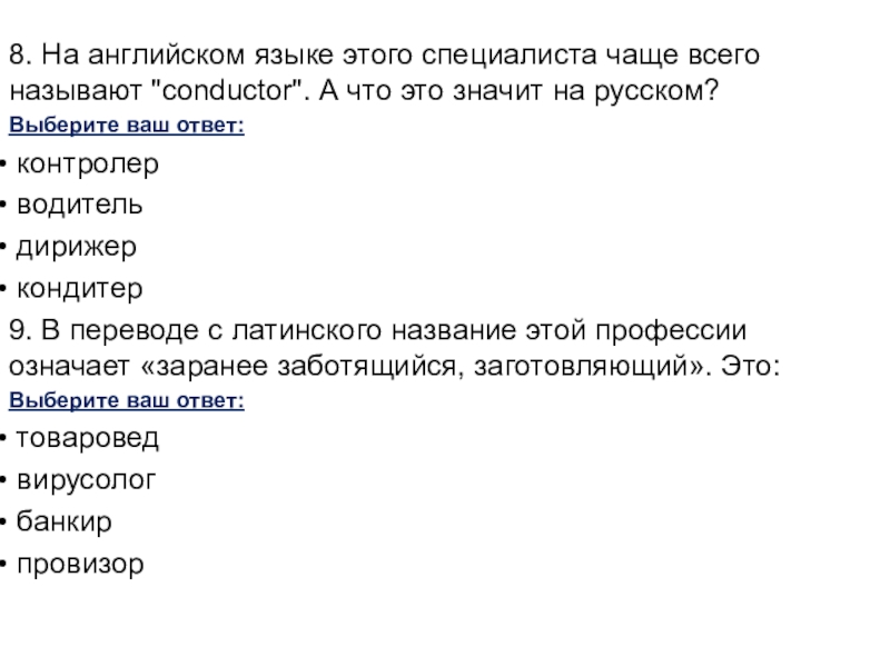 8. На английском языке этого специалиста чаще всего называют "conductor". А