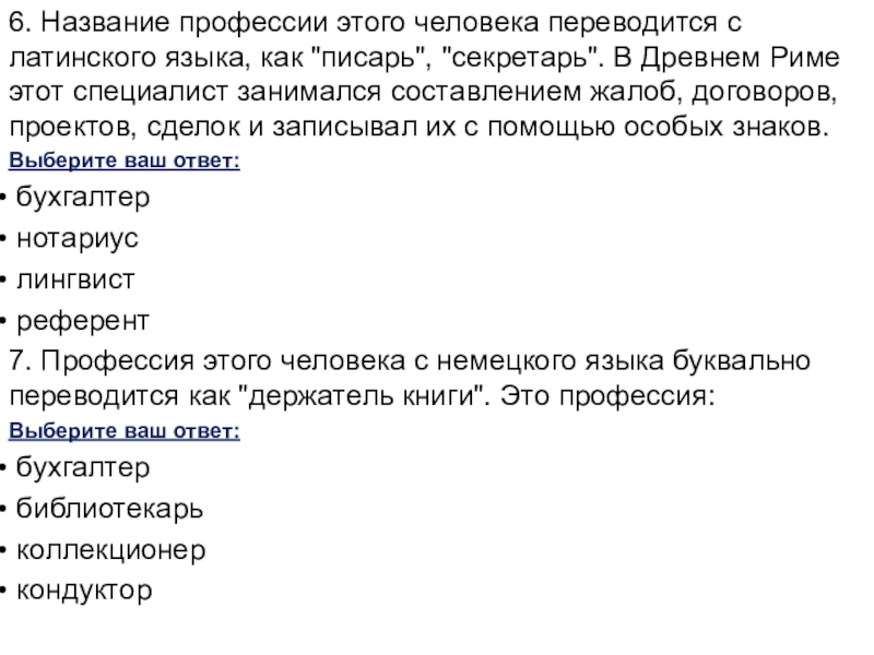 6. Название профессии этого человека переводится с латинского языка, как "писарь",