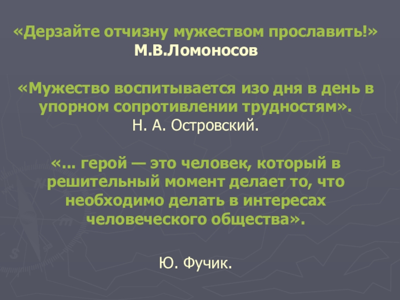 Слайд 2«Дерзайте отчизну мужеством прославить!» М.В.Ломоносов