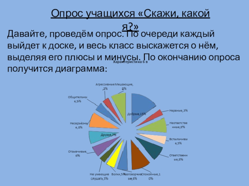 Опрос учащихся «Скажи, какой я?»Давайте, проведём опрос. По очереди каждый выйдет к доске, и весь класс выскажется