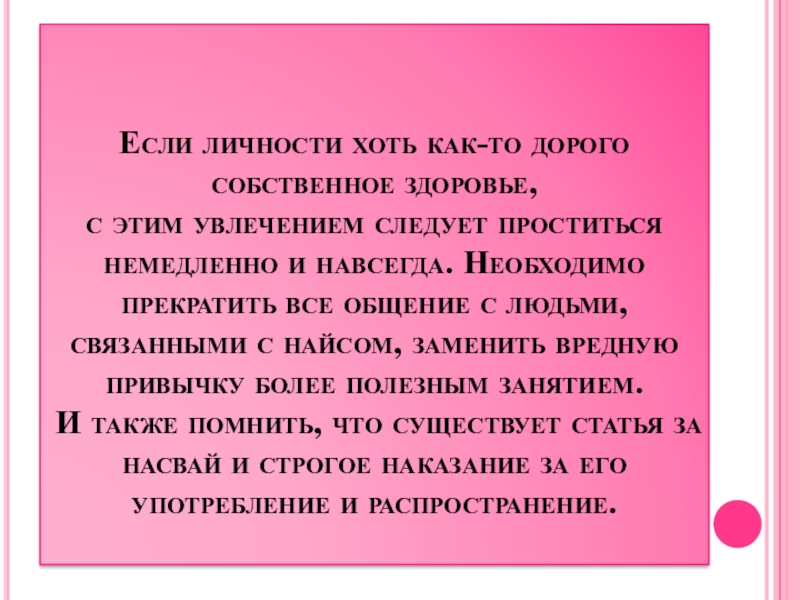 И также помнить, что существует статья за насвай и строгое наказание за его употребление и распространение.