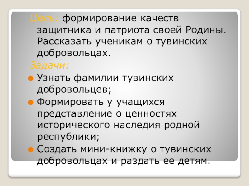 Создать мини-книжку о тувинских добровольцах и раздать ее детям.