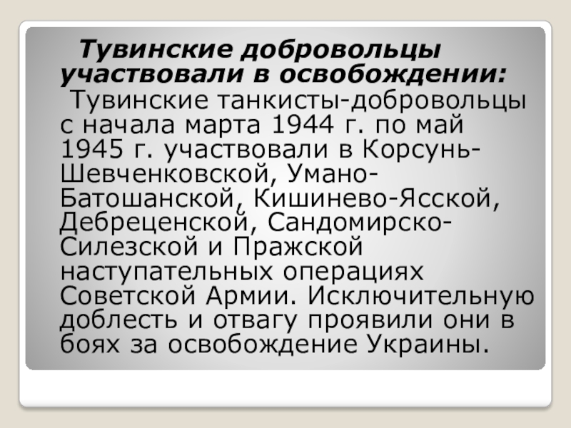 Слайд 12 Тувинские добровольцы участвовали в освобождении: