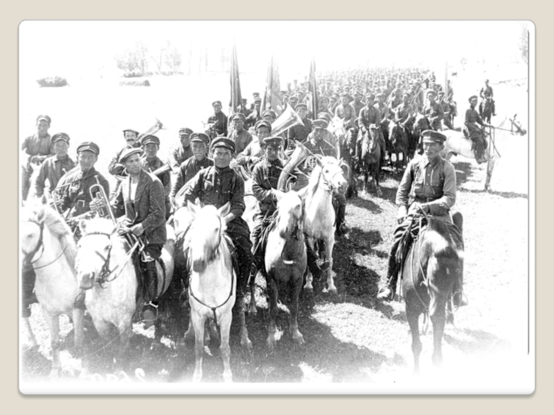 Слайд 14 Тувинские добровольцы-конноармейцы приняли непосредственное и активное участие в освобождении