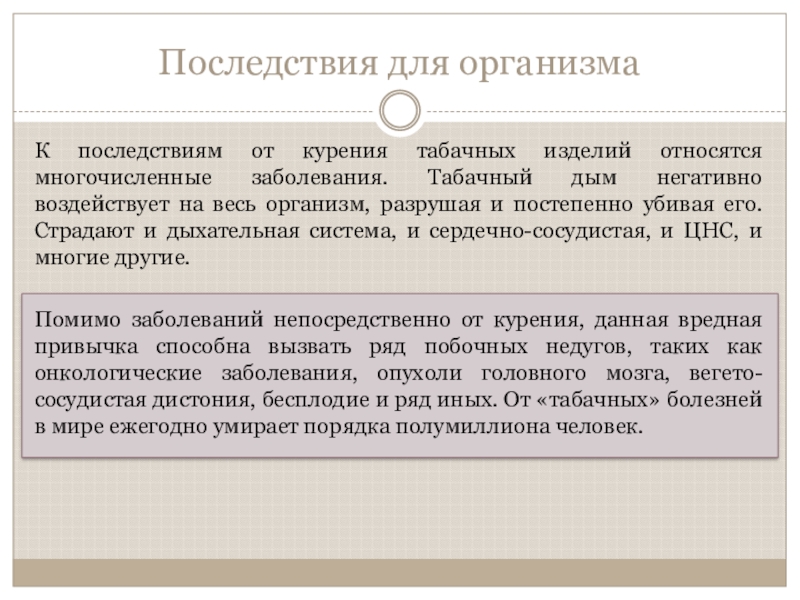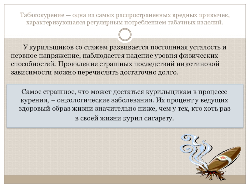 У курильщиков со стажем развивается постоянная усталость и нервное напряжение, наблюдается падение уровня физических способностей. Проявление страшных последствий никотиновой зависимости можно перечислять достаточно долго.