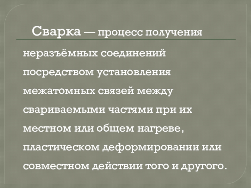 Сварка — процесс получения неразъёмных соединений посредством установления