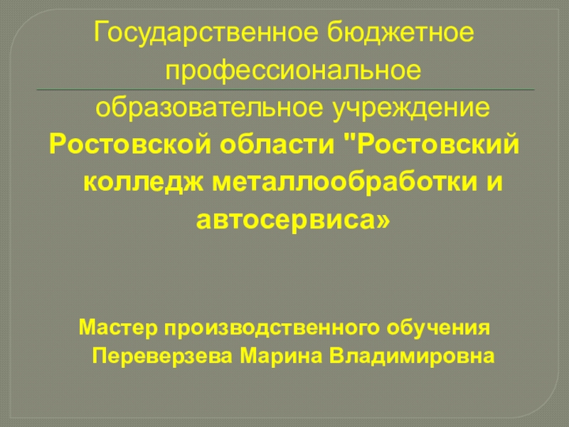 Ростовской области "Ростовский колледж металлообработки и автосервиса»