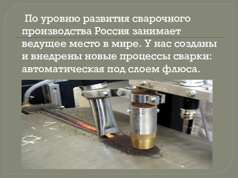 в мире. У нас созданы и внедрены новые процессы сварки: автоматическая под слоем флюса.