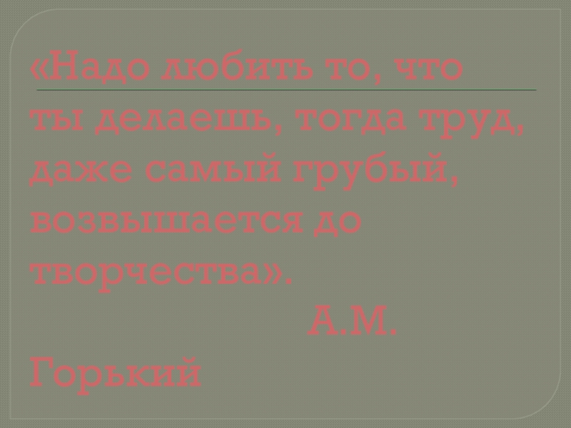 Слайд 15«Надо любить то, что ты делаешь, тогда труд, даже самый грубый,
