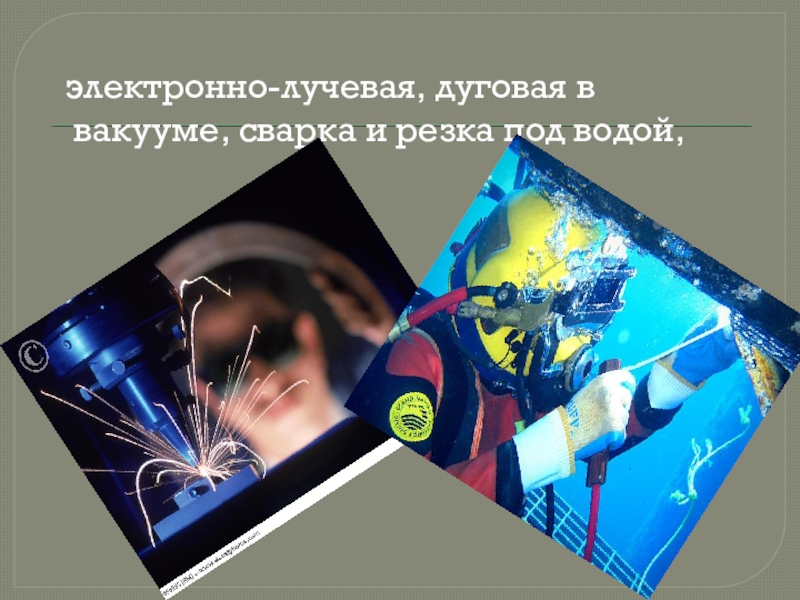 Слайд 14 электронно-лучевая, дуговая в вакууме, сварка и резка под водой,