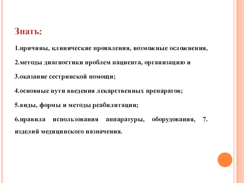6.правила использования аппаратуры, оборудования, 7.изделий медицинского назначения.