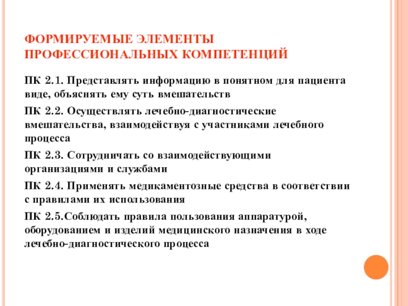 Слайд 2ФОРМИРУЕМЫЕ ЭЛЕМЕНТЫ ПРОФЕССИОНАЛЬНЫХ КОМПЕТЕНЦИЙ