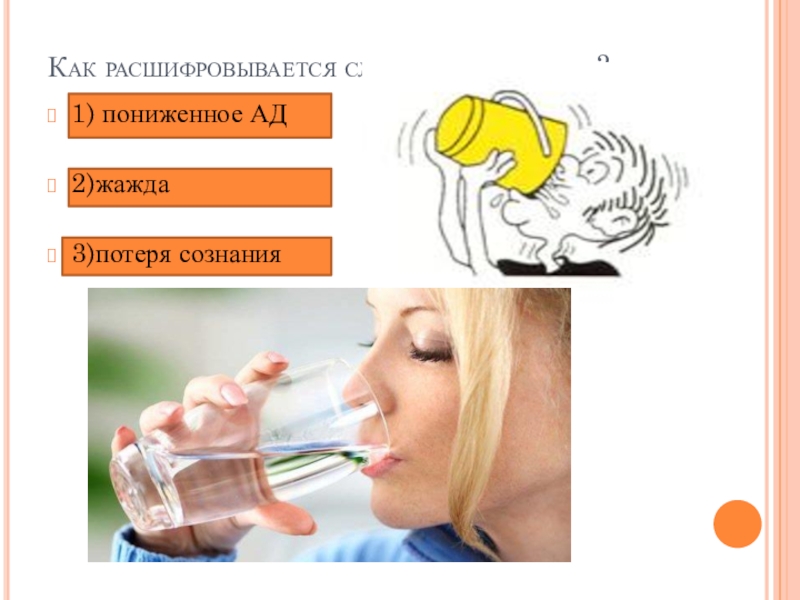 Слайд 36Как расшифровывается слово «полидипсия»?