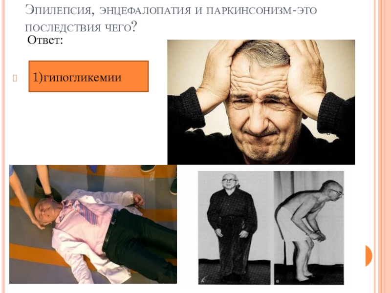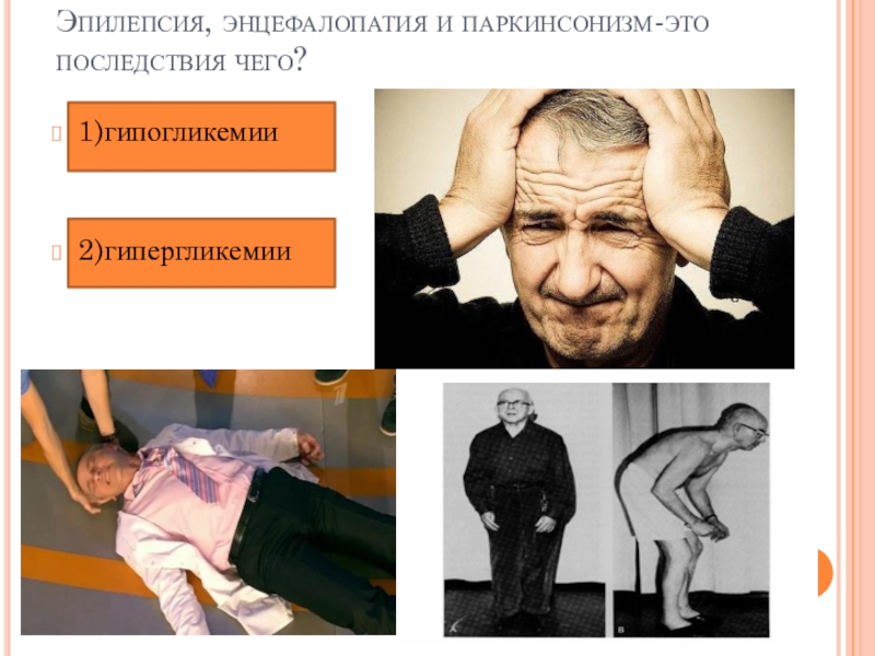 Слайд 44Эпилепсия, энцефалопатия и паркинсонизм-это последствия чего?