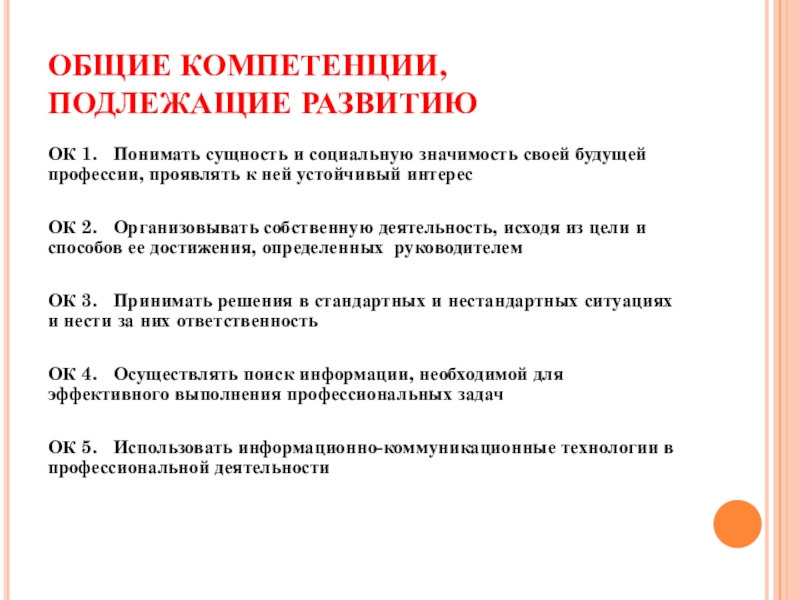 Слайд 4ОБЩИЕ КОМПЕТЕНЦИИ,