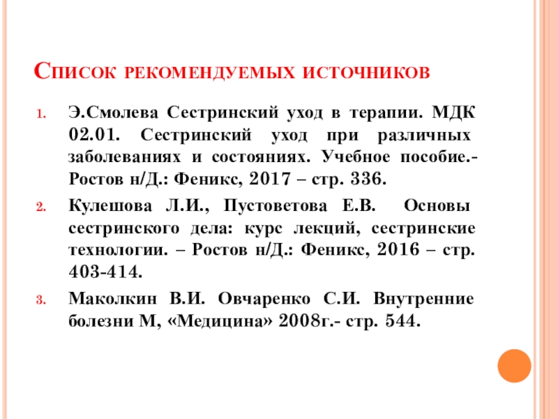 Э.Смолева Сестринский уход в терапии. МДК 02.01. Сестринский уход