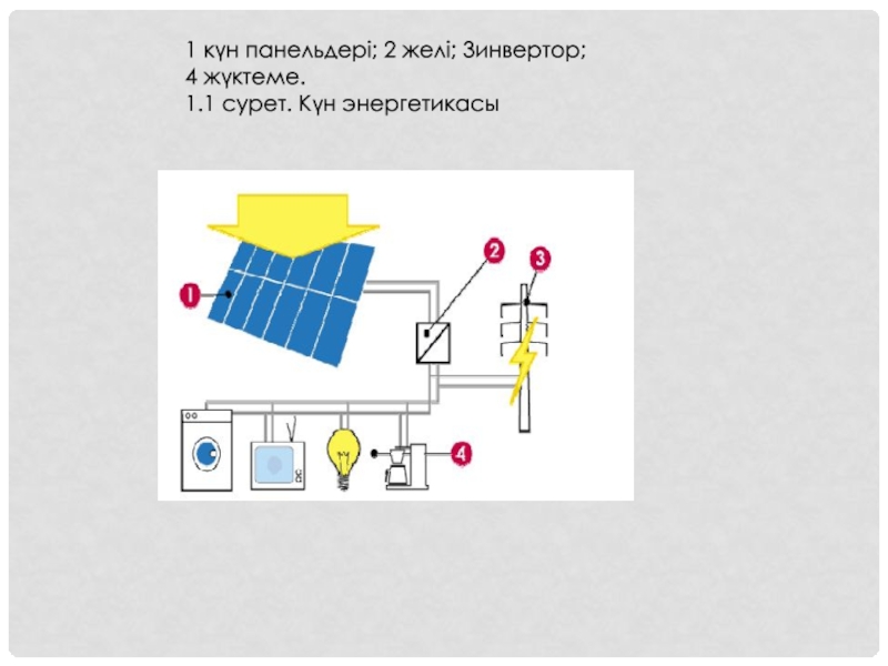 Слайд 51 күн панельдері; 2 желі; 3инвертор;